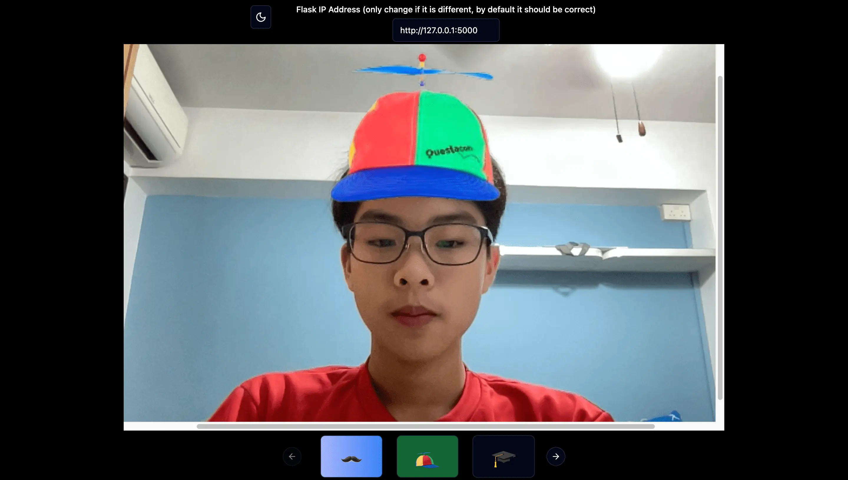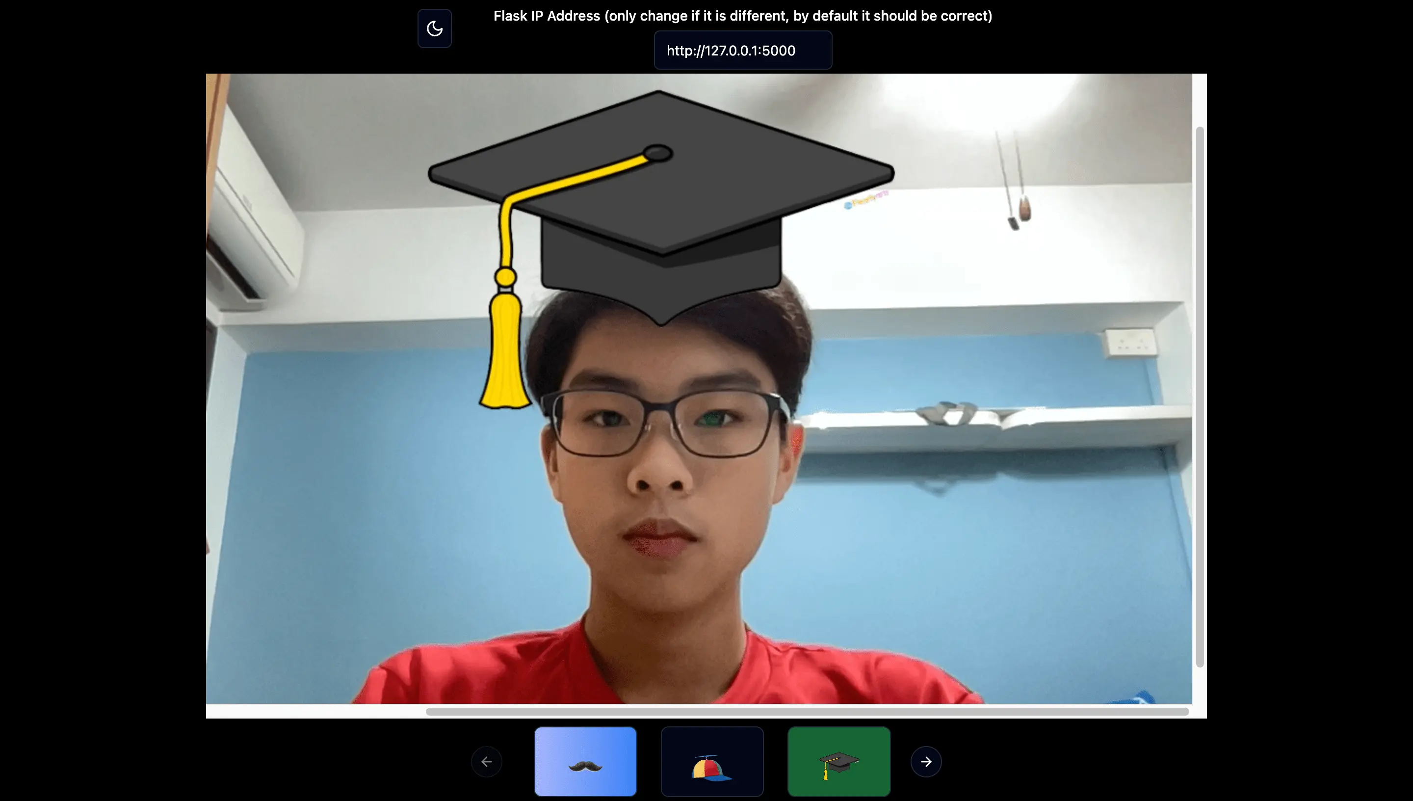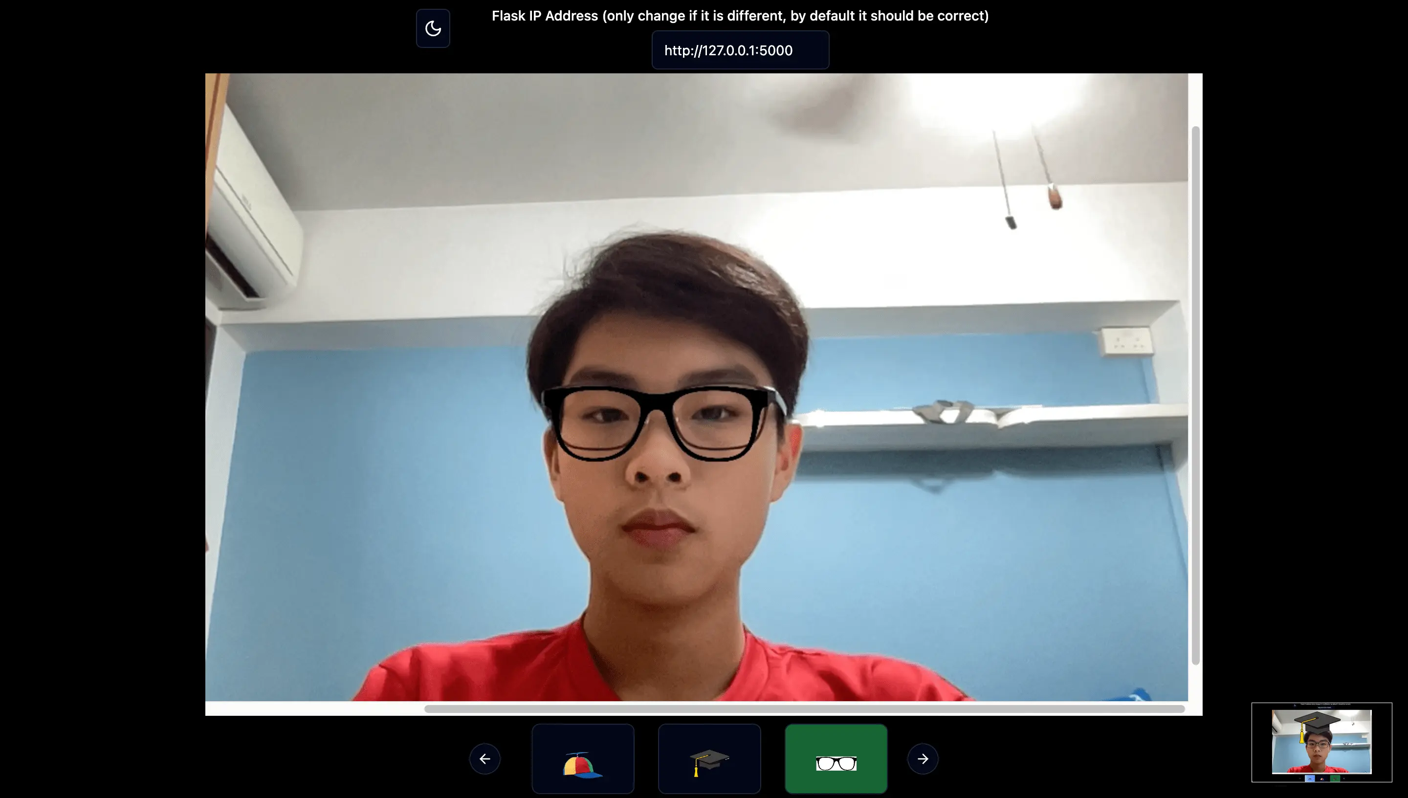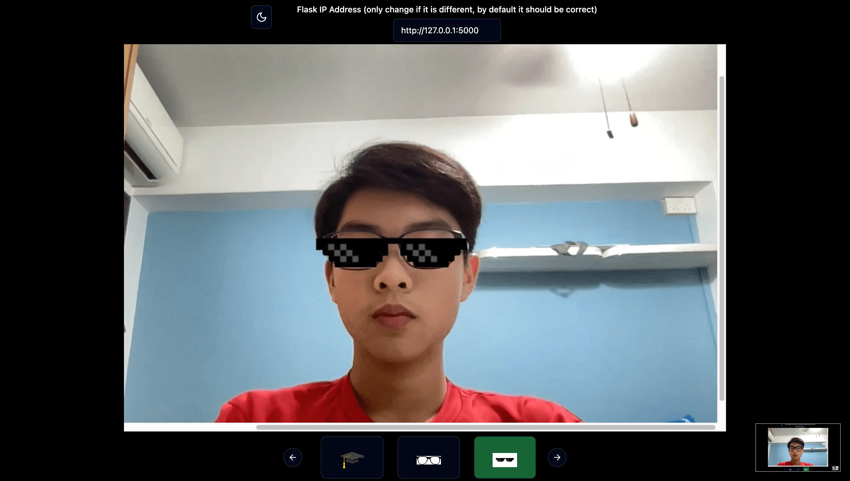 Face Filter is a web app that allows users to apply filters to their faces in real-time. It uses OpenCV to detect faces and apply filters to them. The user can also change the size of the filter by pinching and dragging their fingers up and down, a feature that has never been implemented before. Check out the "Demonstration" section on the GitHub for a video demonstration. The app is built with Vite and Flask.