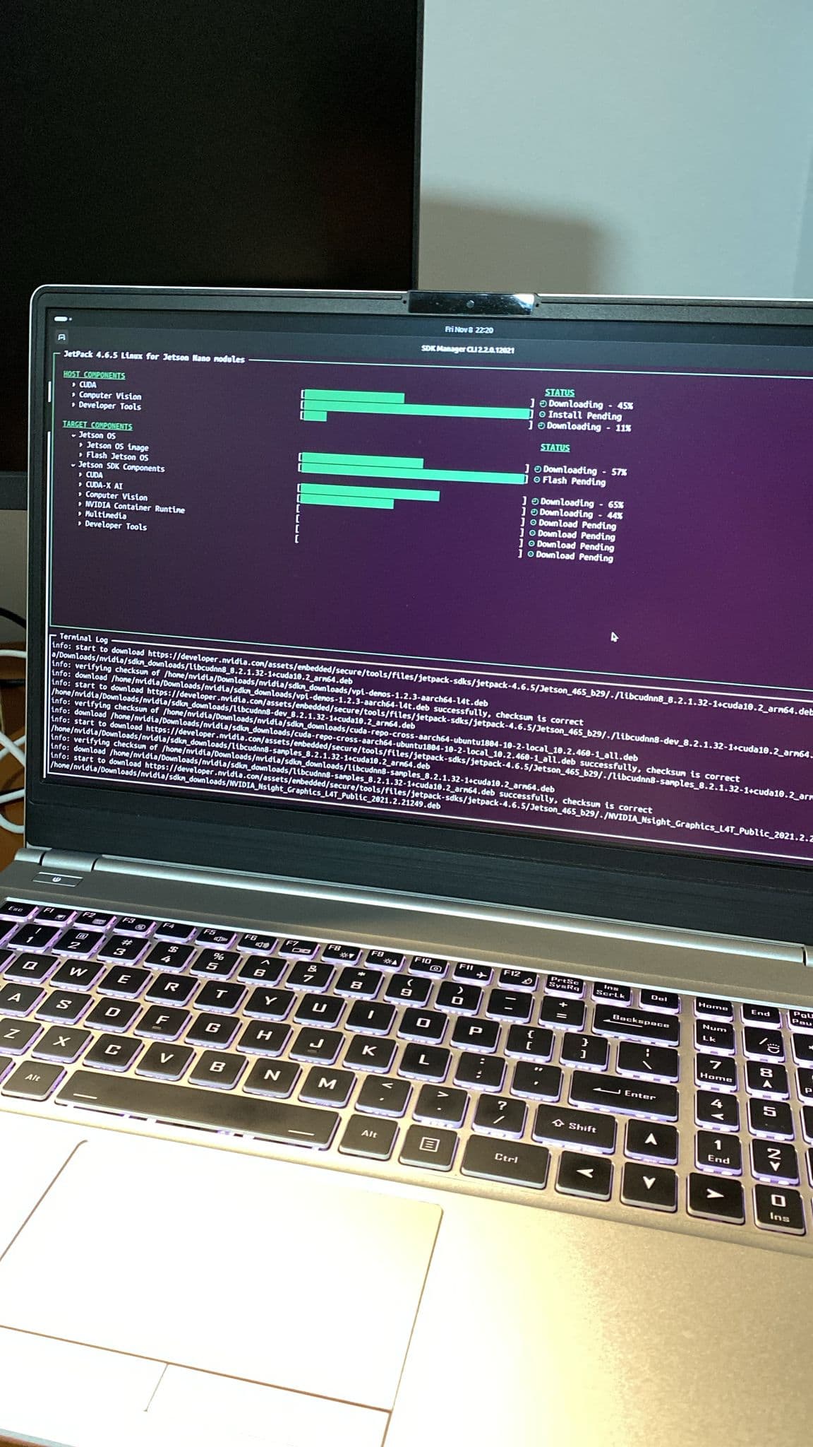 Flashing the NVIDIA Jetson using SDK Manager on an Ubuntu x86 laptop.