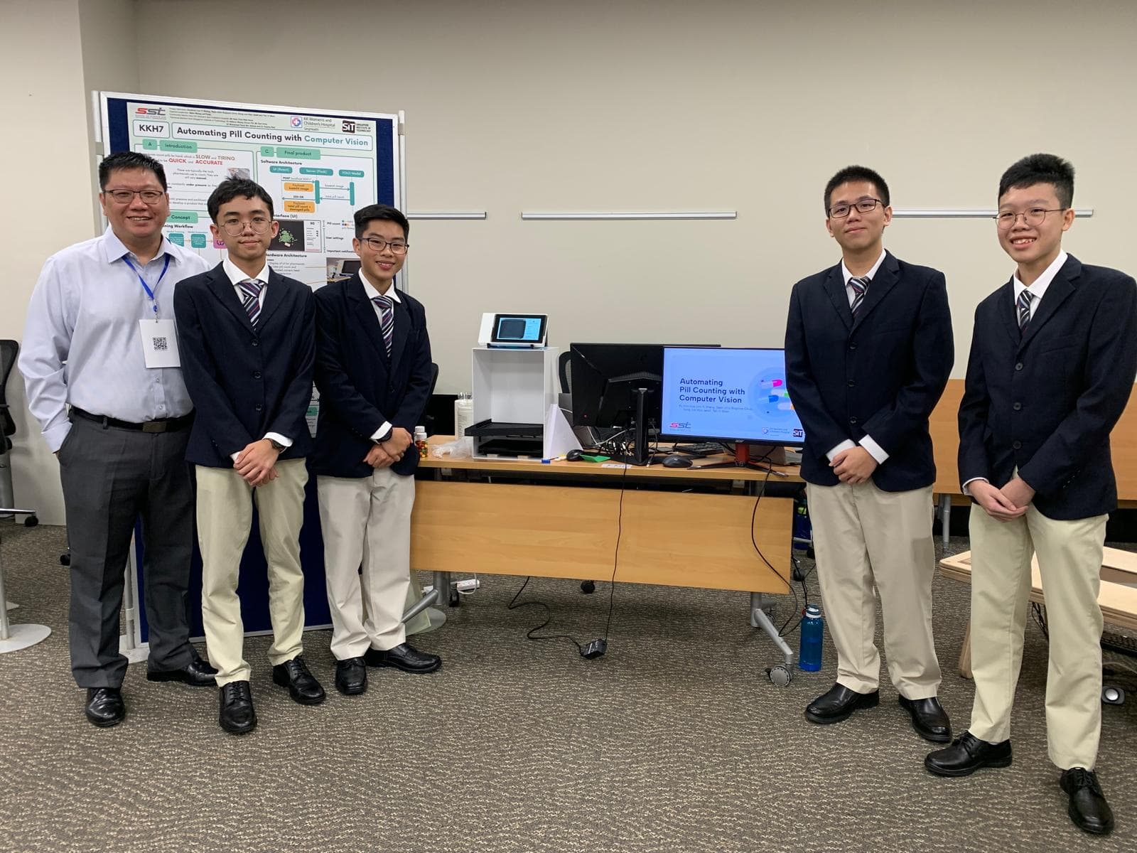 Our KKH mentor on the far left, Mr Alan Chui. I am third from the left. Taken at our school's project showcase day.